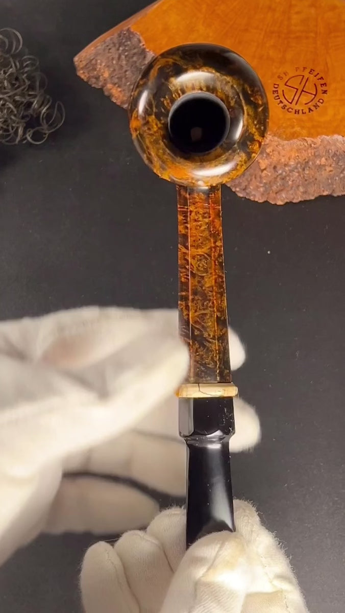 kontrastreiche Maserung. Der achteckige Holm mit Mammutelfenbein-